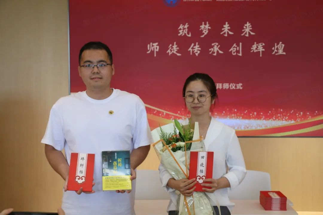 2023屆新員工及師傅逐一上臺,交換拜師帖、獻花、贈書……經過簡單、莊重又不失溫馨的儀式后,2023屆新員工也有了自己心儀的師傅。拜師帖雖小,但是承載的羈絆確很深厚。